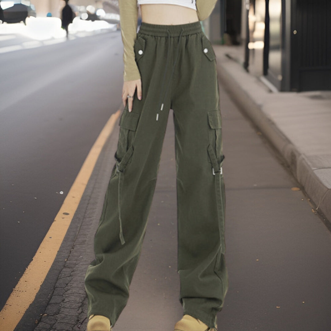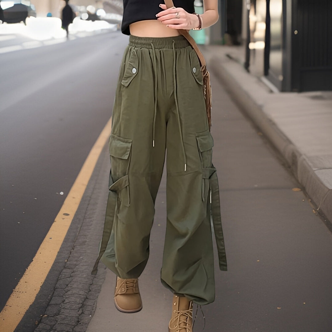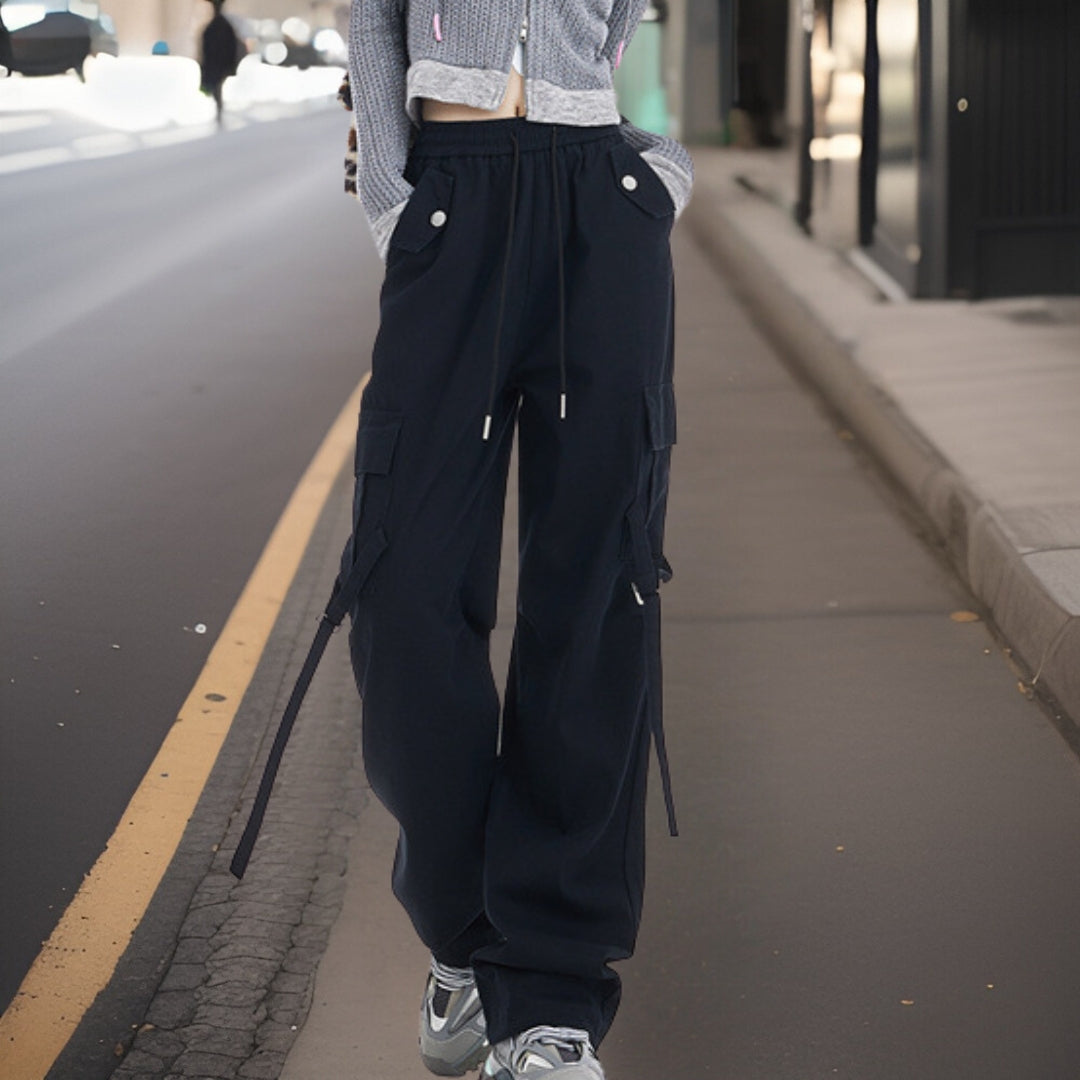- Design: Wide-leg cargo pants with adjustable drawstring