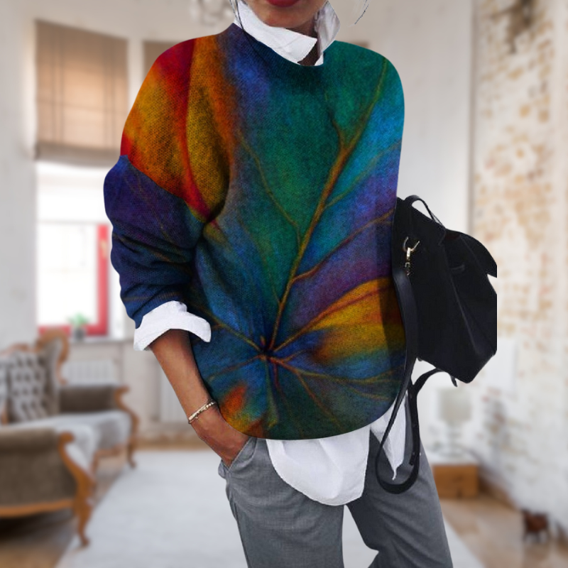 Embrace cozy comfort with this Women's Oversized Sweater - Abstract Leaf Pattern - Loose Fit - Soft Textured Knit from Emporium-Allure. This sweater features a relaxed, loose fit and a striking abstract leaf design, perfect for adding a touch of effortless style to your everyday wardrobe. Crafted with a soft, textured knit, it's the ideal layering piece for cooler days.