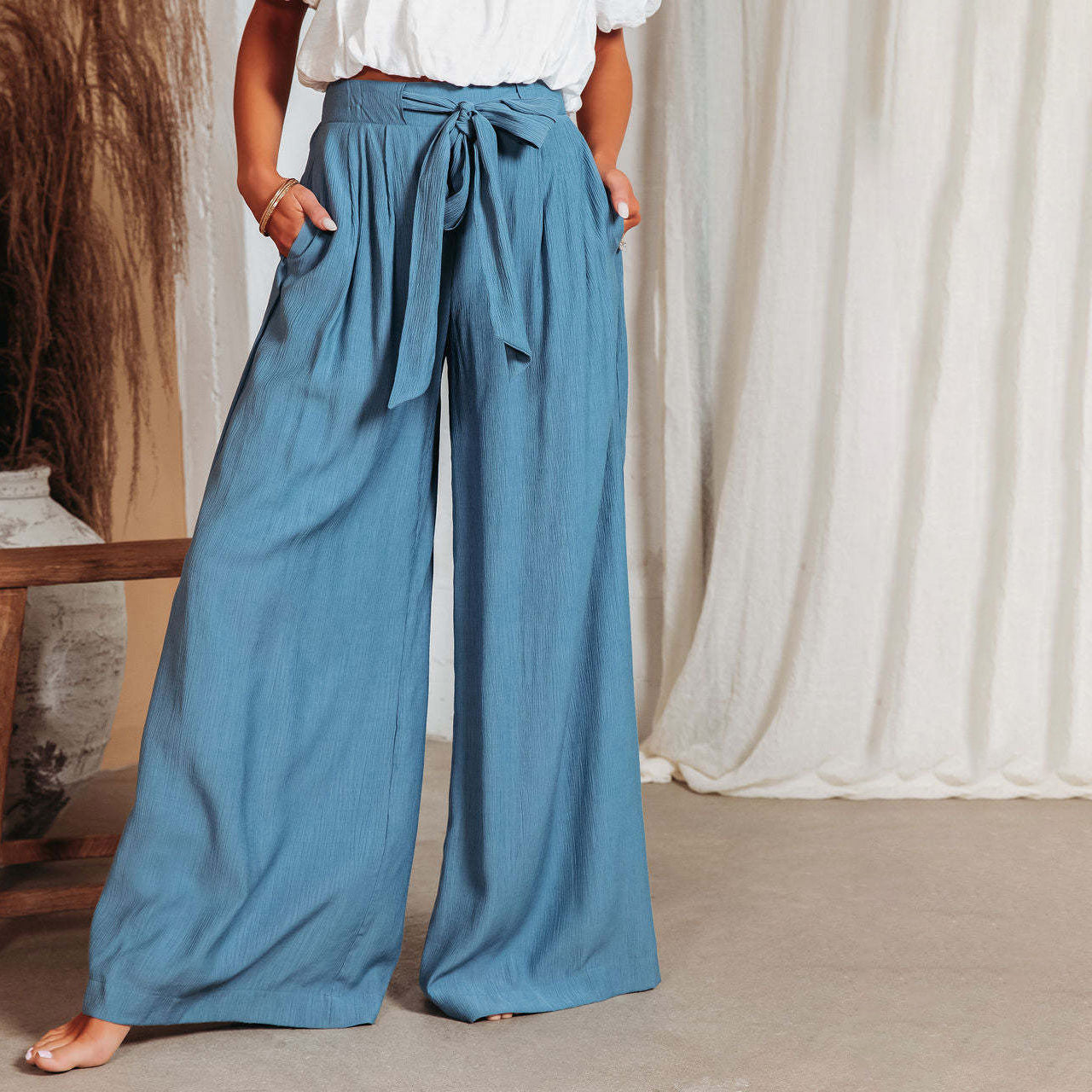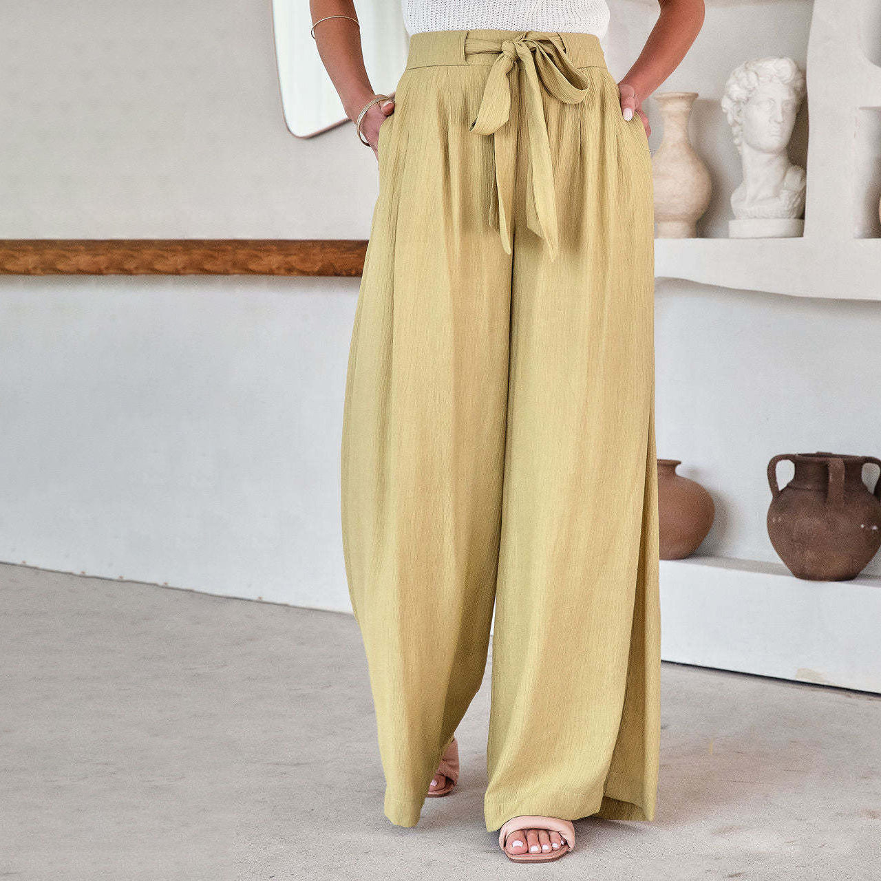Charming Comfort: Marija High-Waist Bow Tie Casual Trousers!