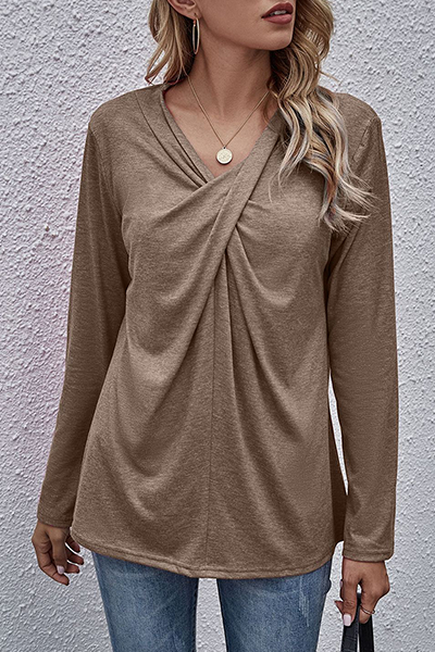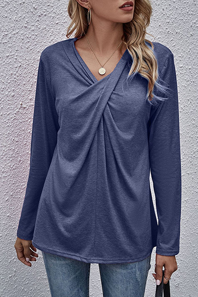 Sabelle’s Casual Split Joint Fold V Neck Top: A Stylish, Versatile Garment for Everyday Chic