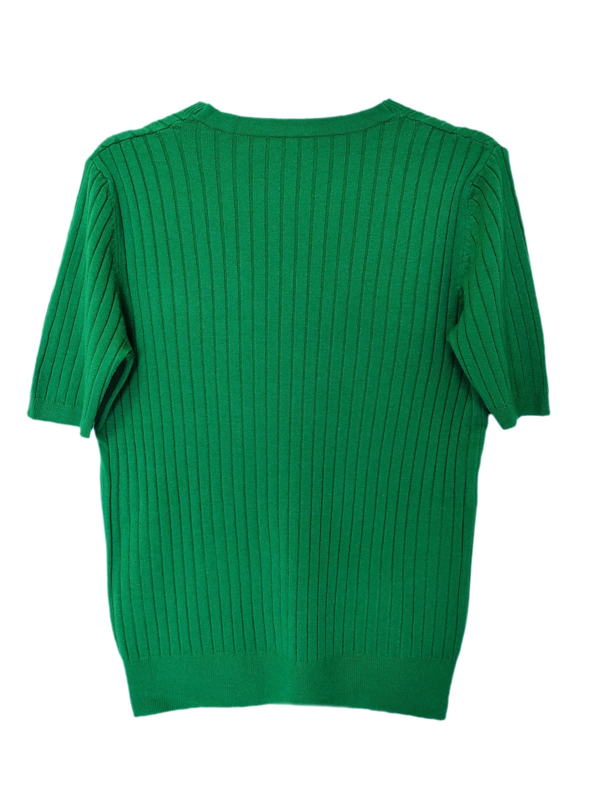 - Design: Ribbed knit, v-neck, short sleeves