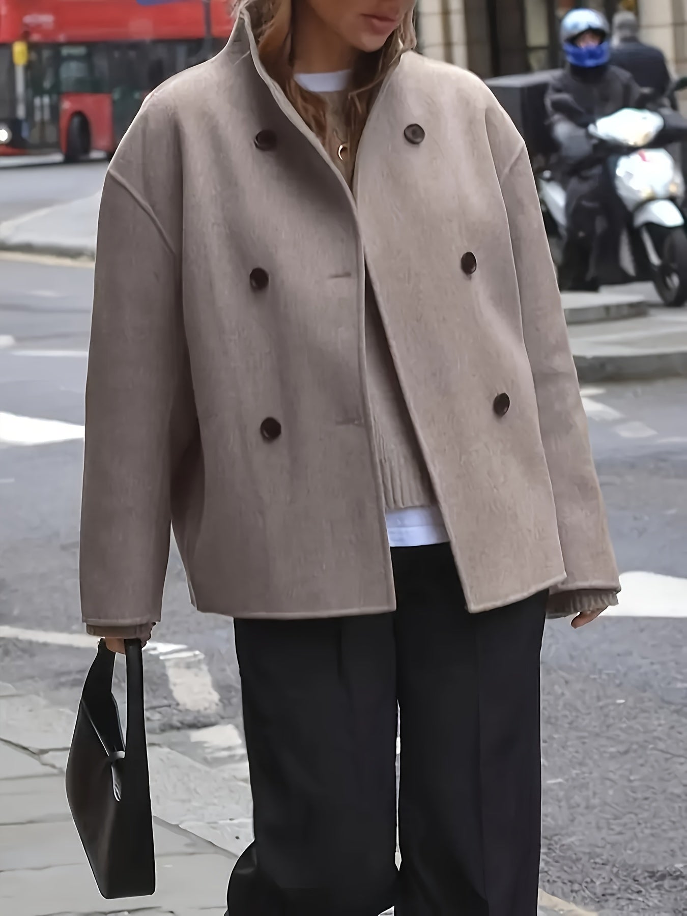 Elevate your outerwear collection with this timeless double-breasted coat, featuring a chic stand collar and elegant detailing. Designed for warmth and style, this coat is perfect for autumn and winter days, effortlessly blending practicality with sophistication. Whether you're heading to work, a casual outing, or a special event, this versatile coat pairs beautifully with any wardrobe. Add boots and a scarf for a polished and refined look.
