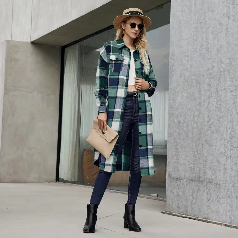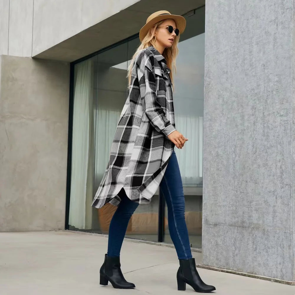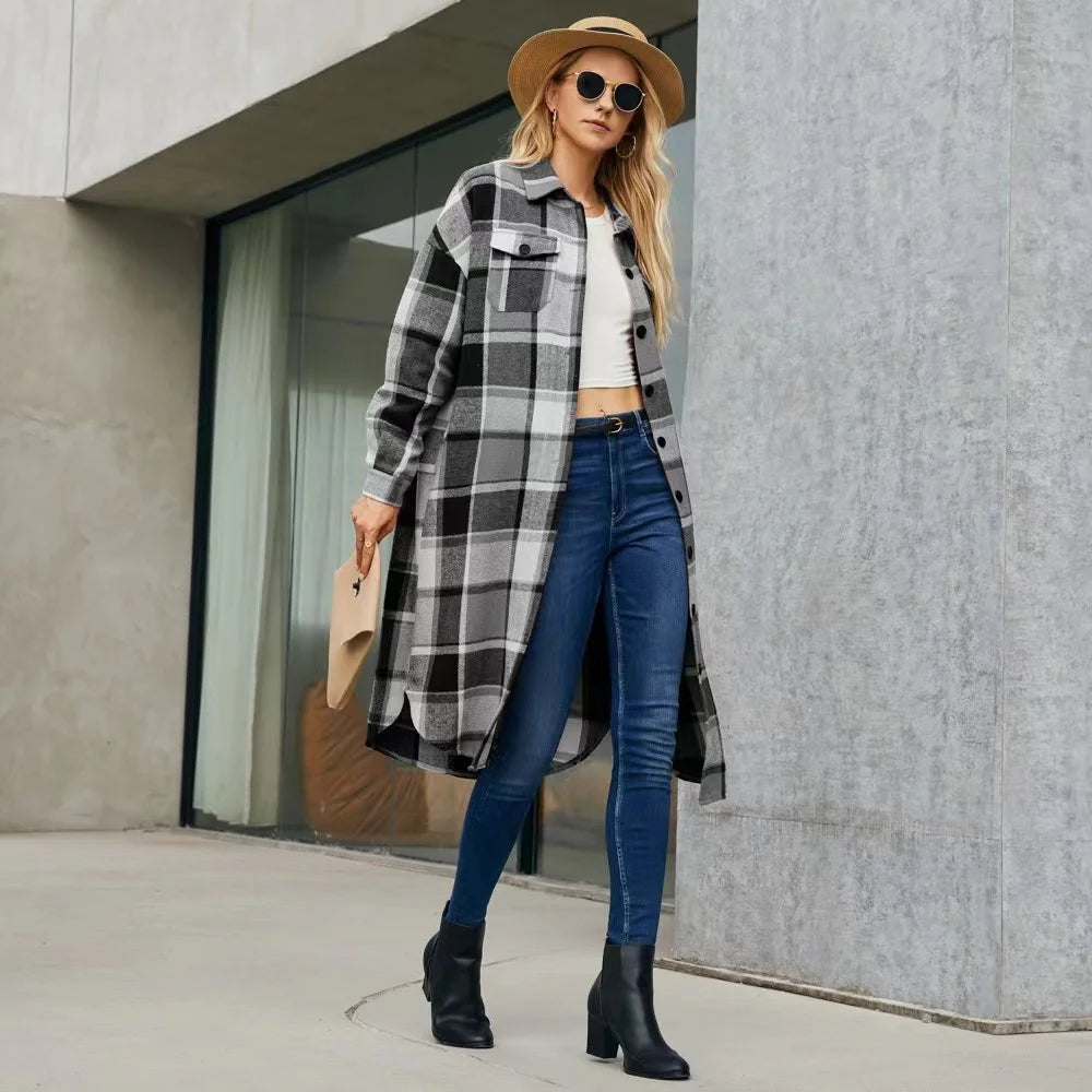 Step out in style with our effortlessly chic plaid trench coat, designed to keep you cozy and fashionable. This versatile coat features sleek side slits for added movement and pockets to keep your essentials close. Perfect for layering over your favorite outfits, it’s ideal for those crisp autumn days or any time you want to make a statement.