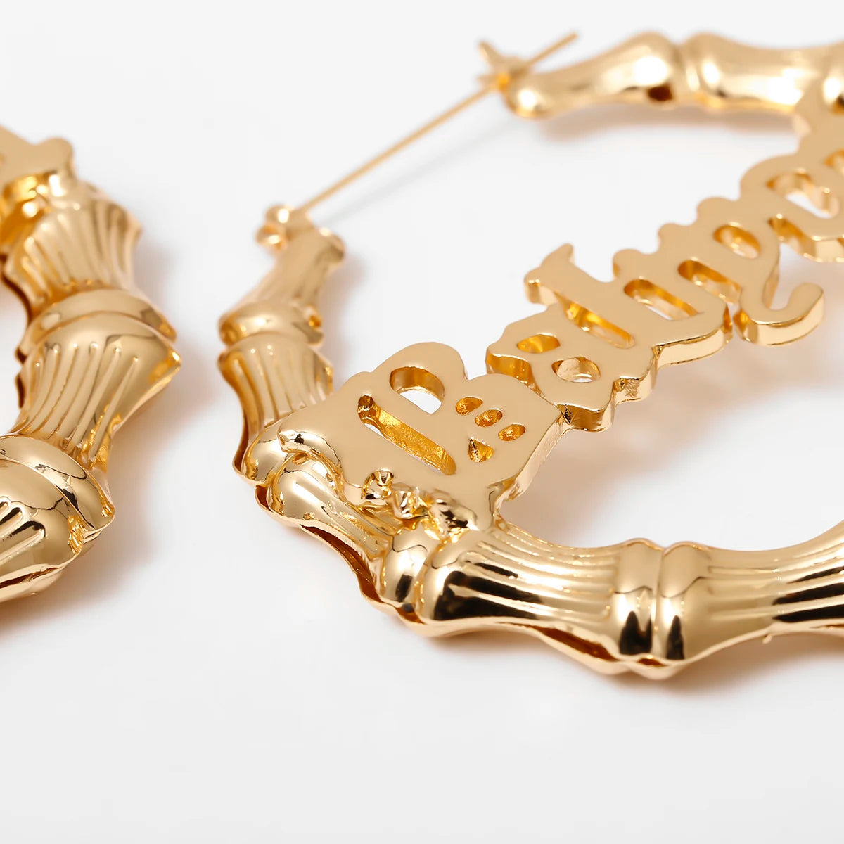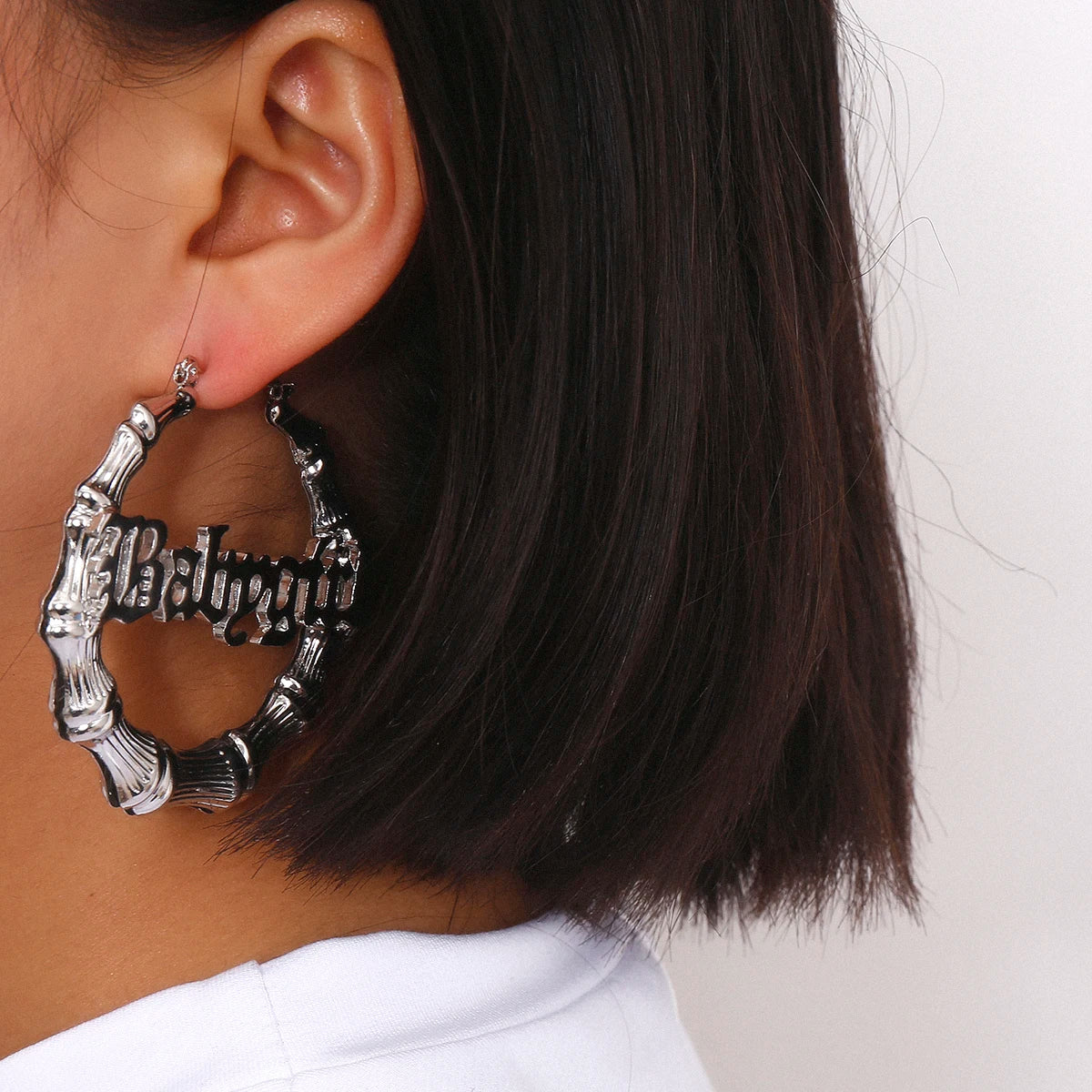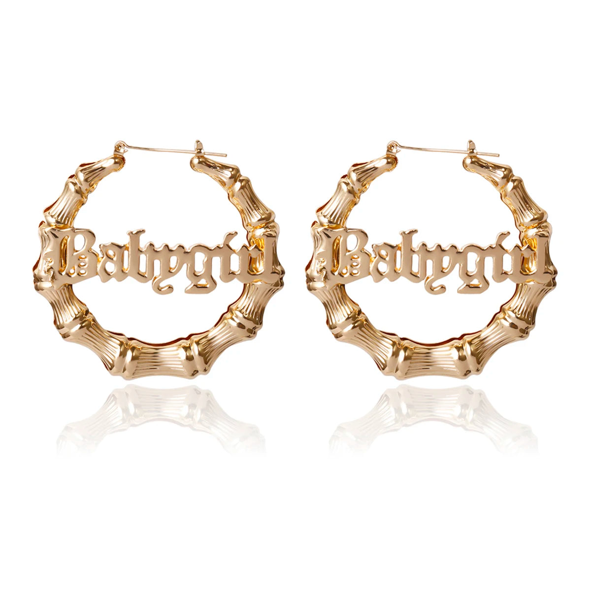 - Design: Bamboo-style hoops with "Babygirl" text