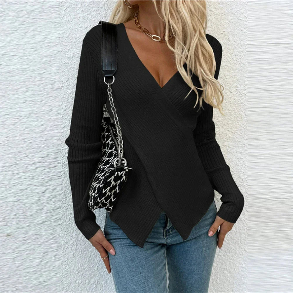 This women's irregular cross sweater brings a modern twist to your wardrobe, perfect for those who love to stay ahead of fashion trends. The unique crisscross design creates a flattering silhouette, making it a great choice for casual outings, date nights, or cozy weekends. With its trendy long sleeves and relaxed fit, it’s both stylish and comfortable. Elevate your everyday look with this must-have sweater that pairs beautifully with jeans or skirts for any season.