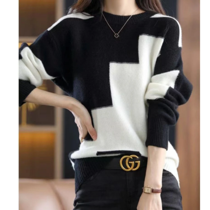 Make a statement in this women's oversized color block loose soft knit sweater. Its vibrant color-block design and ultra-soft knit bring a playful yet laid-back vibe to your casual wardrobe. Perfect for layering on chilly days, this sweater combines comfort and fashion in the coziest way.