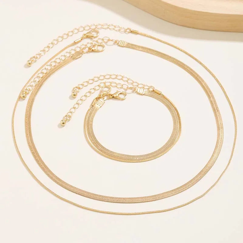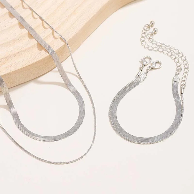 Vintage Snake Bone Chain Necklace & Bracelet Set