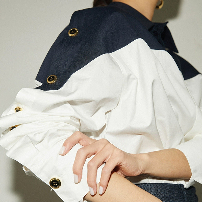 This modern loose-fit shirt offers a stylish take on niche fashion, perfect for casual outings or making a statement during spring. Featuring a chic color matching design, this versatile piece is easy to pair with any outfit. Designed for women who value both comfort and style, it's the ultimate blend of fashion-forward looks and everyday wearability.