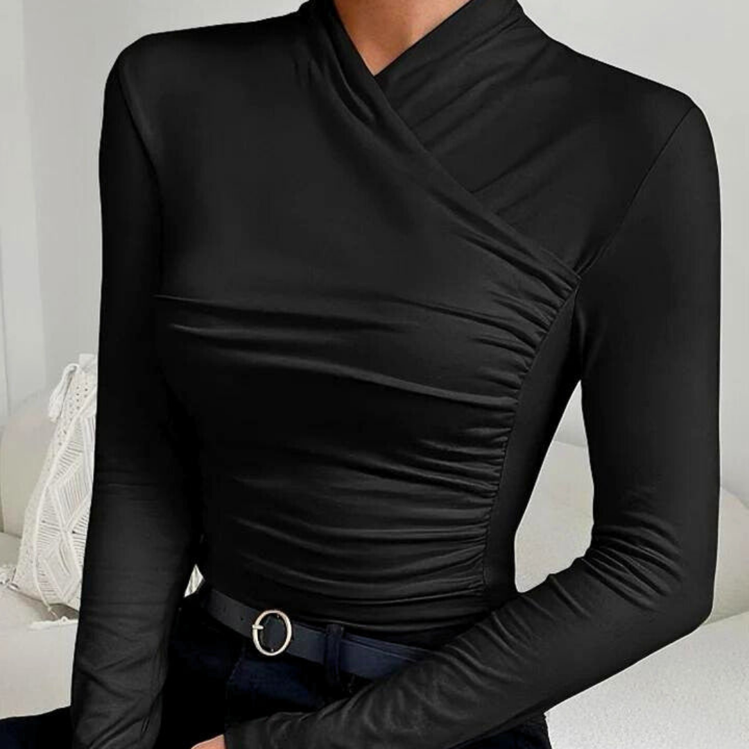 Elevate your style game with our women’s cross-collar slim fit pleated top, designed to turn heads and flatter every figure. This elegant piece combines a sophisticated cross-collar design with delicate pleats for a look that's both modern and timeless. Perfect for adding a touch of class to any occasion, from a day at the office to an evening out.