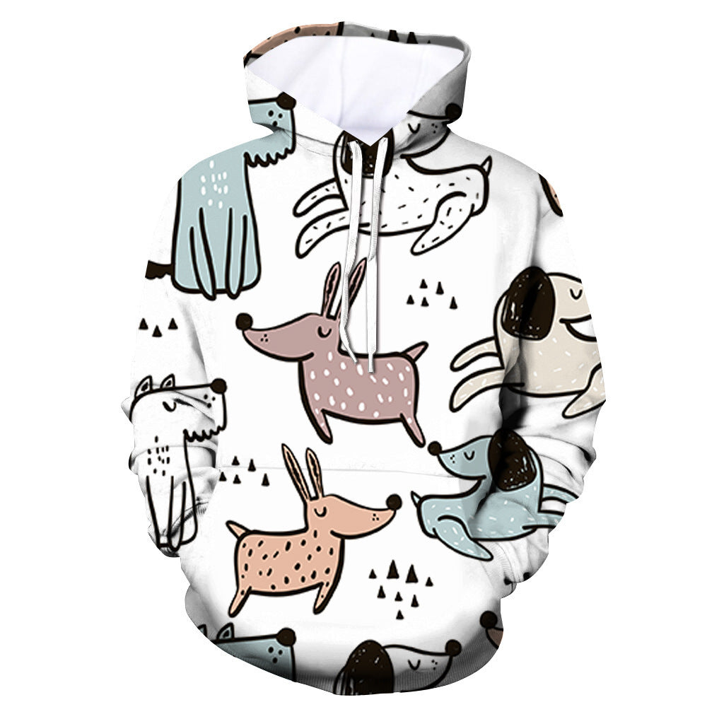 Show off your playful side with this women's dog print pullover hoodie, perfect for casual outings or relaxing at home. Featuring a whimsical dog pattern, a drawstring hood, and a relaxed fit, this hoodie combines cuteness and comfort effortlessly. Its soft and lightweight fabric ensures cozy wear throughout all seasons. Pair it with jeans or leggings for a fun and stylish look perfect for dog lovers.