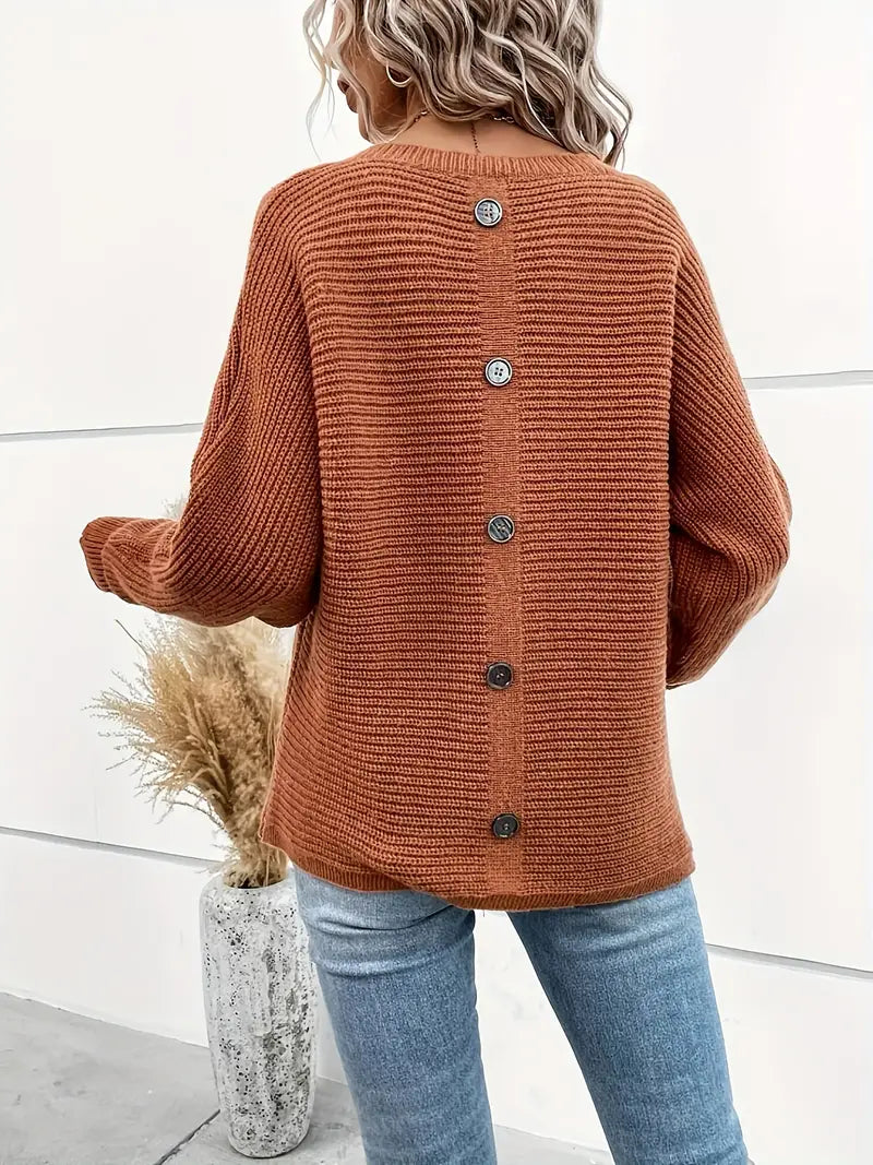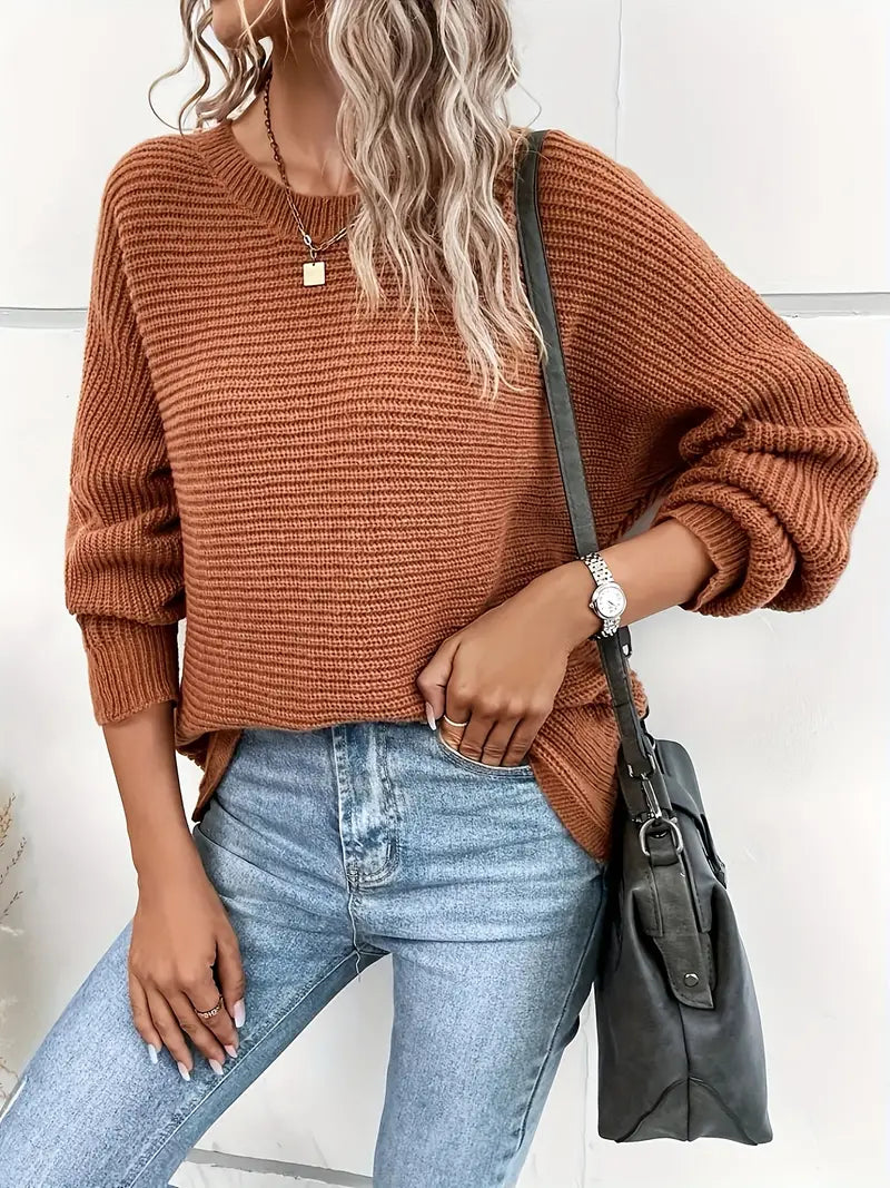 This elegant round neck sweater with batwing sleeves is designed for women who love effortless sophistication. The flowy batwing sleeves add a touch of drama and elegance to the classic round neck silhouette, creating a relaxed yet chic look. Made from soft, comfortable fabric, this sweater is perfect for layering or wearing on its own. Ideal for both casual and semi-formal occasions, it pairs effortlessly with jeans, skirts, or trousers for a polished, stylish outfit.
