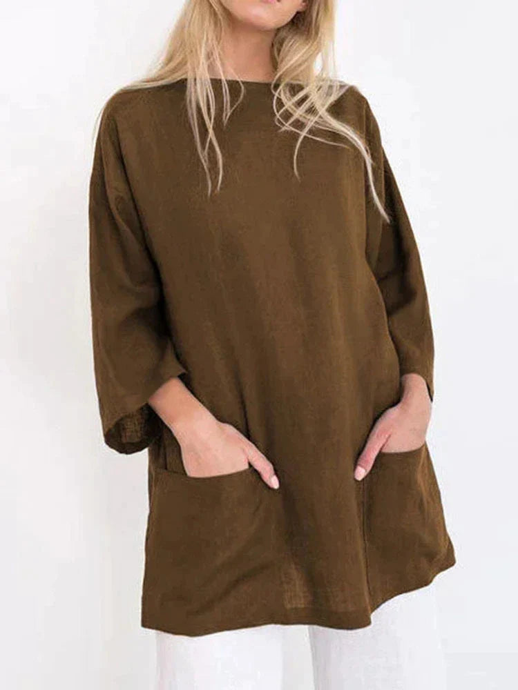 This loose long shirt is designed for women who value comfort and effortless fashion. With its relaxed, flowing fit and longer length, this shirt is perfect for layering or wearing on its own for a chic, laid-back look. Made from soft, breathable fabric, it ensures comfort throughout the day, making it ideal for casual outings or relaxed weekends. Pair it with leggings, jeans, or shorts for a versatile, easy-going outfit that exudes style without trying too hard.