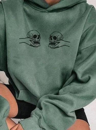 This stylish skull hoodie is perfect for women who love to make a statement with their casual outfits. Featuring a bold skull graphic, this hoodie adds an edgy vibe to your look while keeping you warm and comfortable. Made from soft, durable fabric, it offers a relaxed fit and an adjustable hood for everyday wear. Pair it with jeans or leggings for a cool, laid-back style that combines comfort with a rebellious edge.