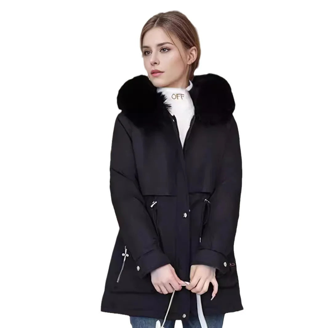 This women's winter parka coat features a flattering drawstring waist that accentuates your silhouette, while the plush fur collar adds a touch of luxury and warmth. Designed for chilly days, this coat combines style and functionality, making it perfect for casual outings or winter adventures. Bundle up in this essential outerwear piece for a chic winter look!