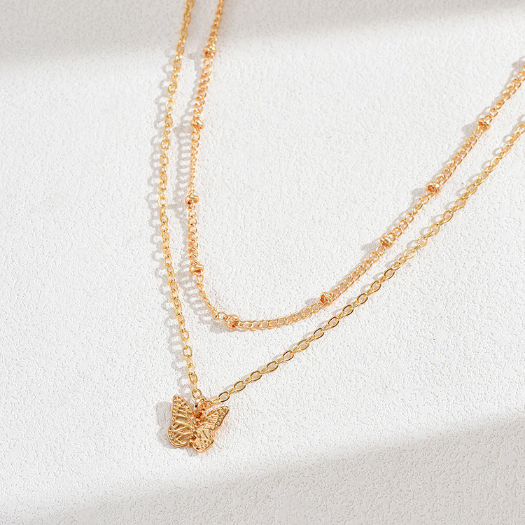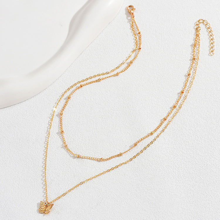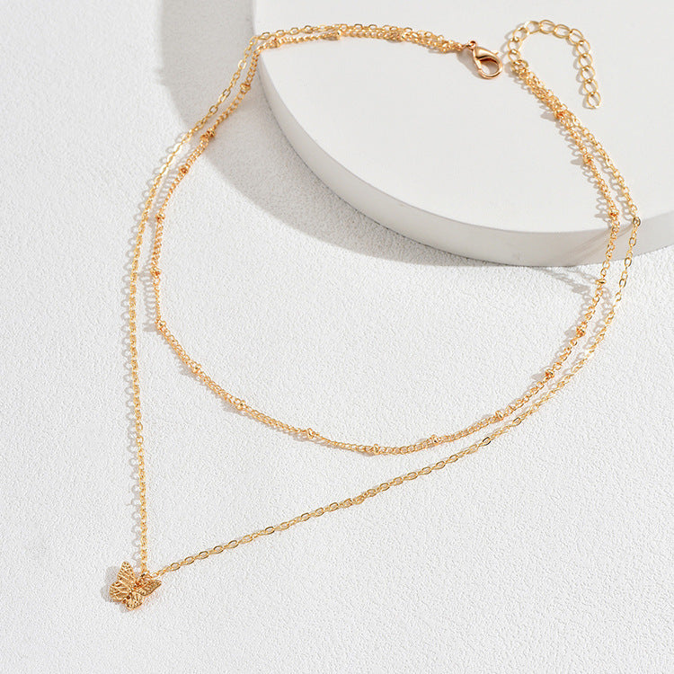 Delicate Layered Adjustable Butterfly Pendant Necklace